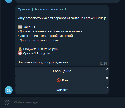 Наш бот автоматически анализирует сообщения и определяет целевых клиентов